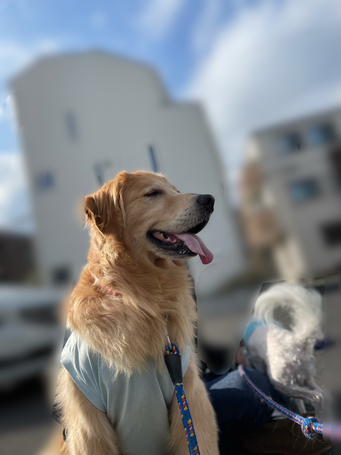 天候も良く散歩に行きました!ゴールデンレトリバーの『アンディー』とマルチーズの『ルイ』を連れてお散歩に 久し振りのお散歩で2匹とも大騒ぎでした! 楽しそうでよかった♪ 次はドックランに行こうね♪ -