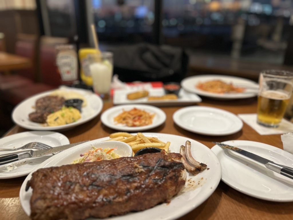 初めてのFRIDAYSだったのですが1品1品の量がとても多く大満足でした( *´艸`)何よりも景色がとても綺麗でした✨食事した時間帯が夕方~夜だったので、夕日から夜景に移り変わる景色が最高でした。