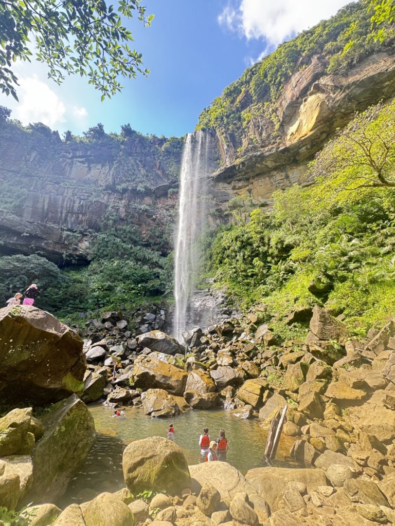 先日旅行で、山を登り滝を見に行ってきました。山の中にある大きな滝で、水の勢いと音の迫力にみんなびっくり!