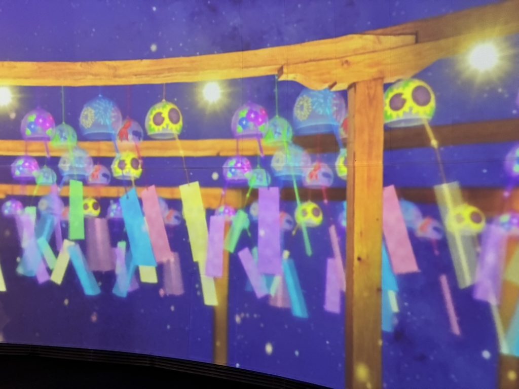 涼しい室内で、まるで本物の夏祭りの夜空の下にいるような気分が味わえます。