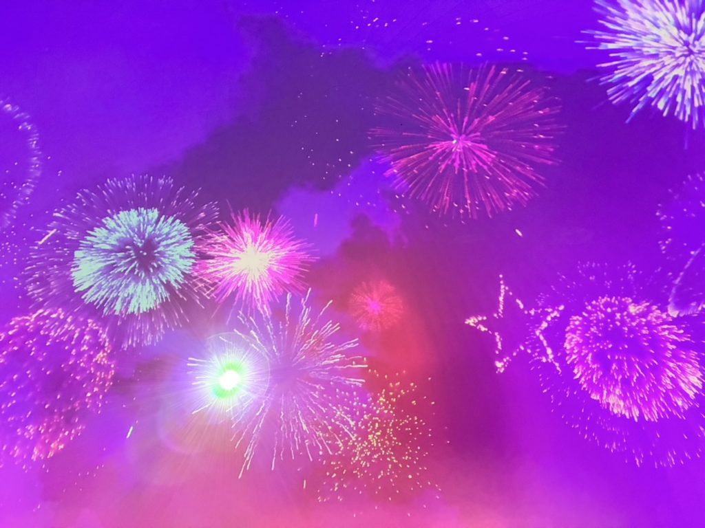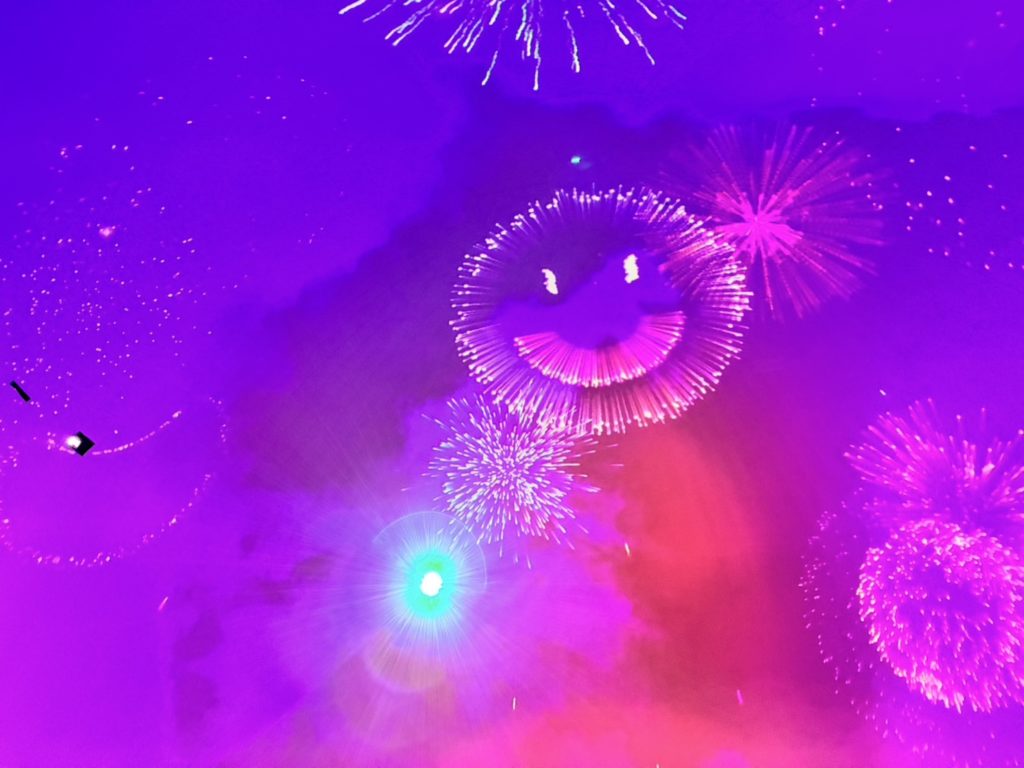 プラネタリウムのドームいっぱいに広がる星空と、色鮮やかな花火の映像。