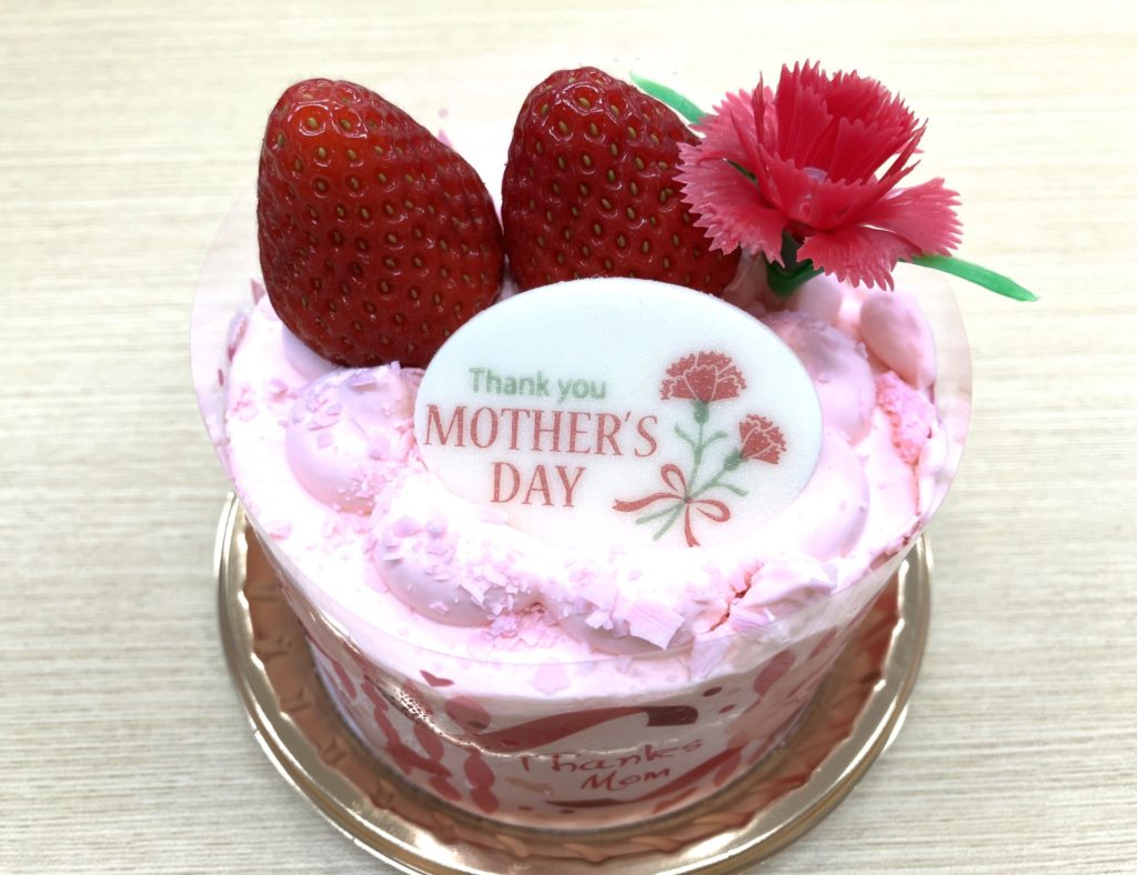 ピンク色のクリームに真っ赤なイチゴ、そして「Thank you MOTHER’S DAY」のメッセージとカーネーションの飾り付きで、見た目からもう癒されます🌸