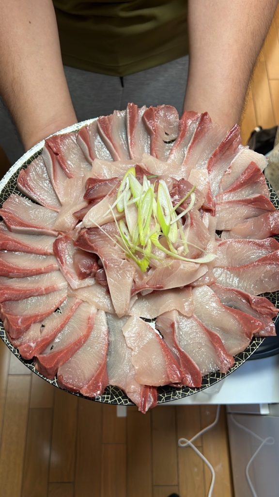 鰤しゃぶは、薄切りの鰤をお湯でさっとしゃぶしゃぶして、ポン酢でいただきました。
